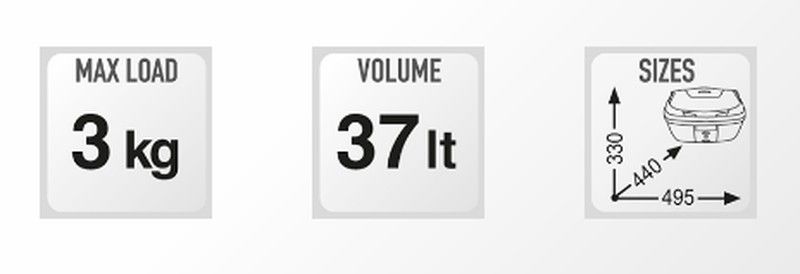 Bagul MONOLOCK® 37 Lts negre amb catadriópticos vermell. Inclou graella i kit de fixació universal