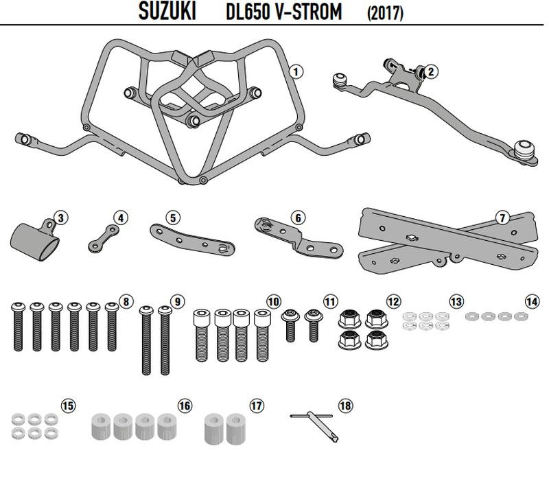 Soporte lateral para maletas de extracción rápida específico para maletas MONOKEY® o RETRO FIT Suzuki. DL 650 V-Strom (17 > 23)
